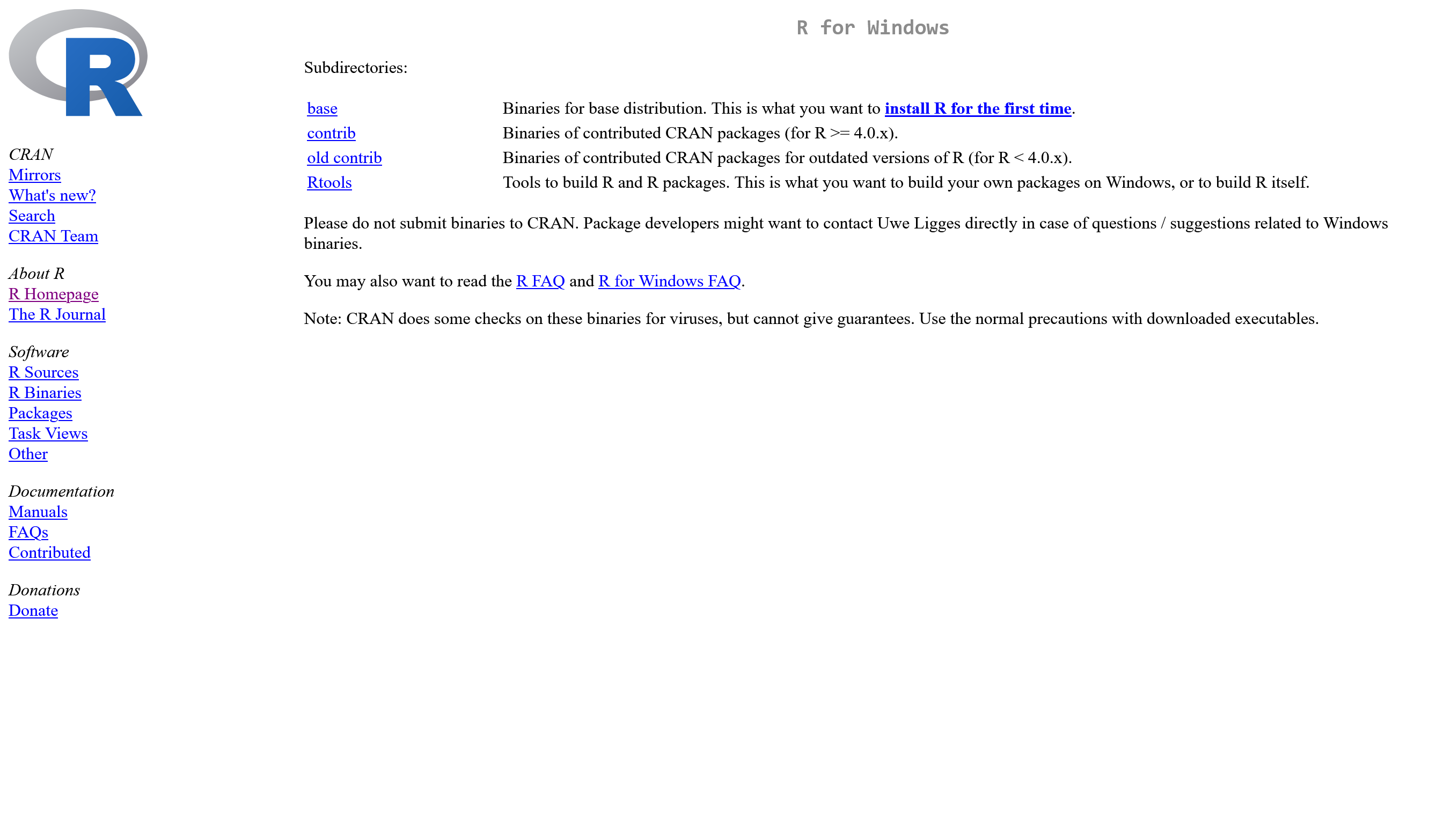 - こちらにアクセスし、Linux, Windows, Macから自分の環境に合わせて「Download R for ~」をクリックします。