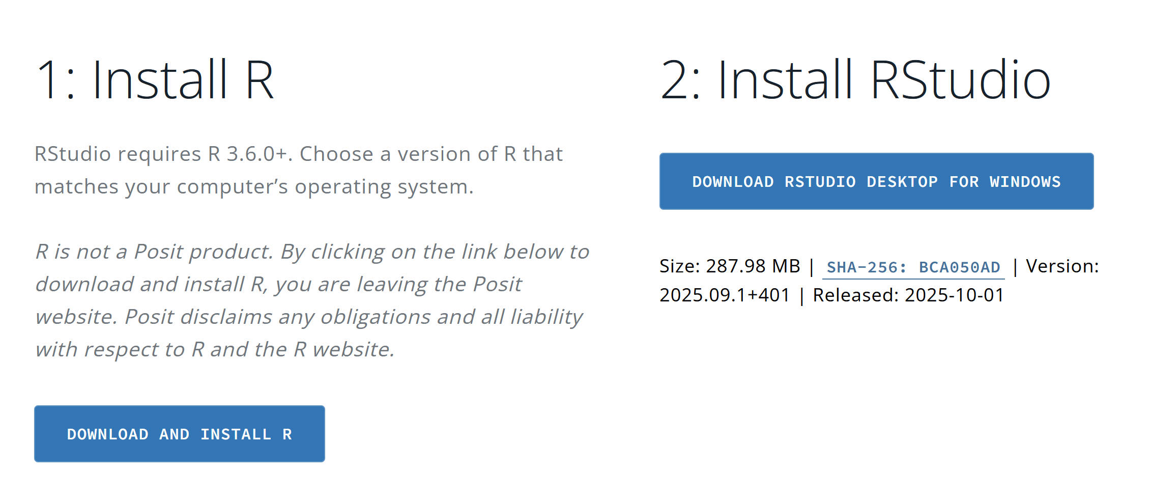 - こちらより「2: Install RStudio」をクリックしてインストーラーをダウンロードします。