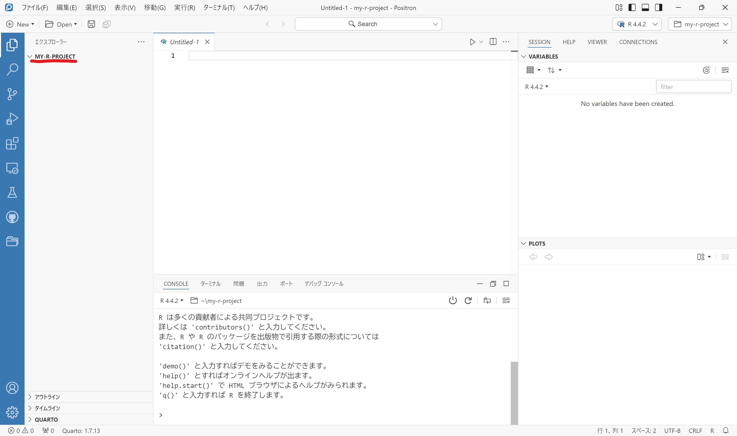 先述の通り、PositronではRプロジェクトを作ることができないので、別の方法をとります。