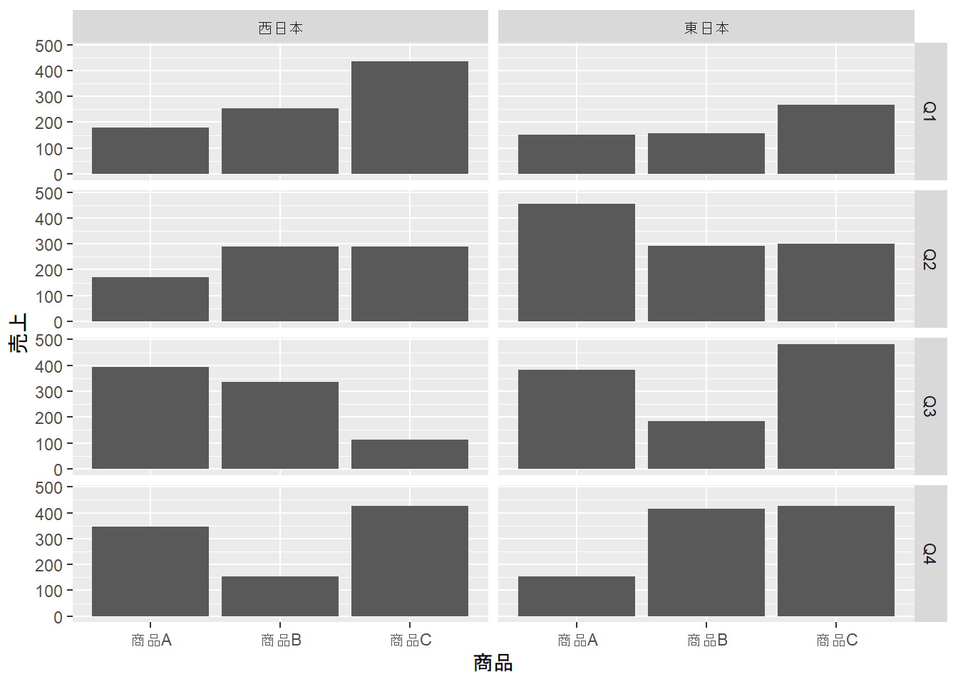 四半期 = rep(c("Q1", "Q2", "Q3", "Q4"), each = 6),