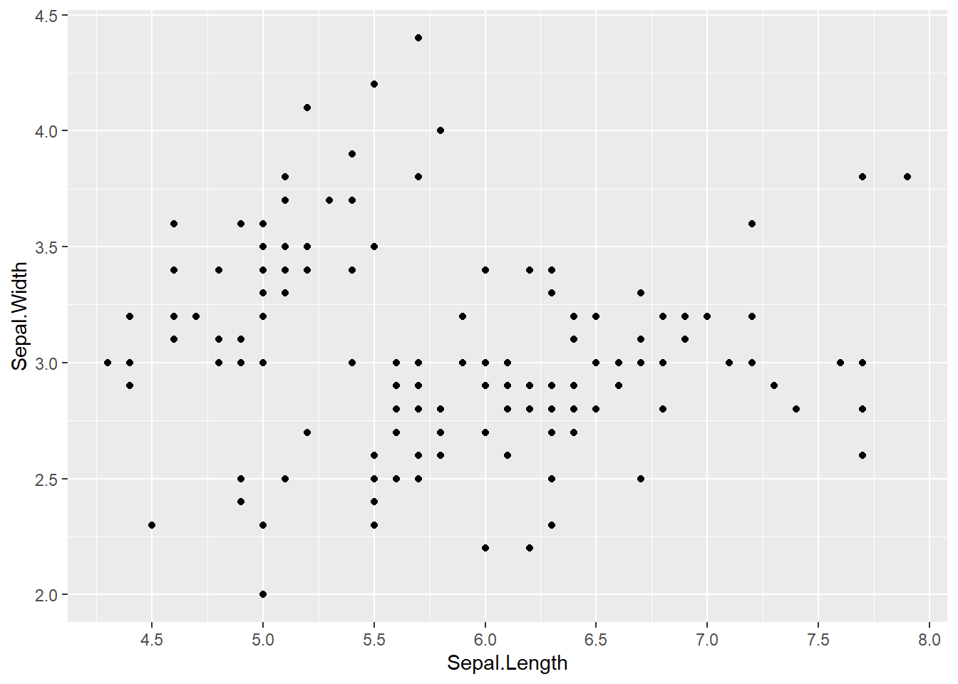 ggplot(iris, aes(x = Sepal.Length, y = Sepal.Width)) +