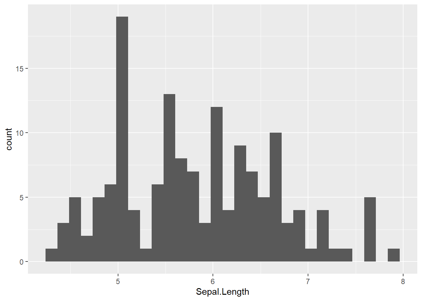 ggplot(data = iris, aes(x = Sepal.Length)) +