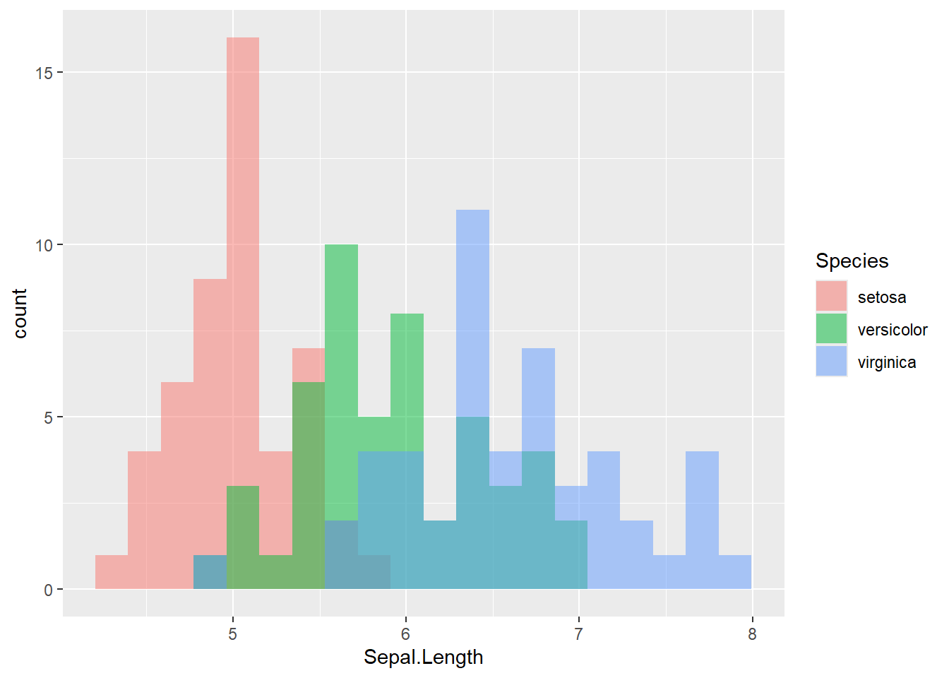 ggplot(data = iris, aes(x = Sepal.Length, fill = Species)) +
