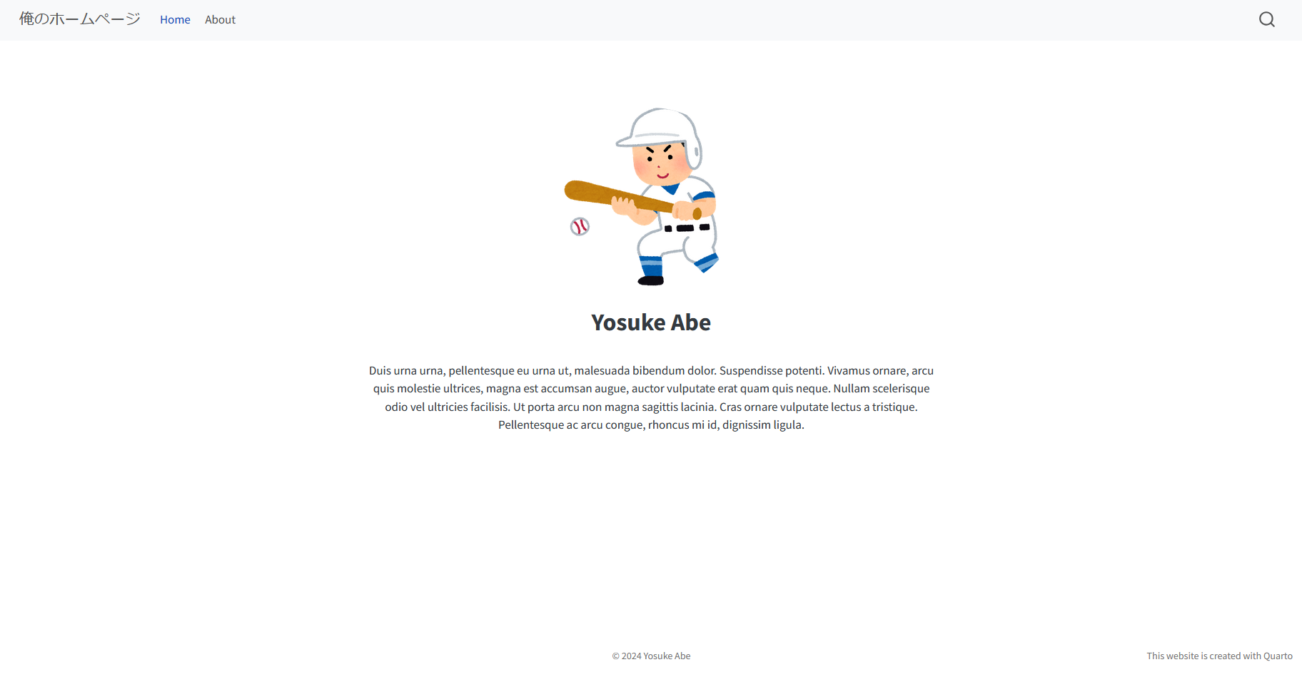 right: This website is created with Quartopage-footerでフッターを追加することができ、left, center, rightをそれぞれ設定可能です。