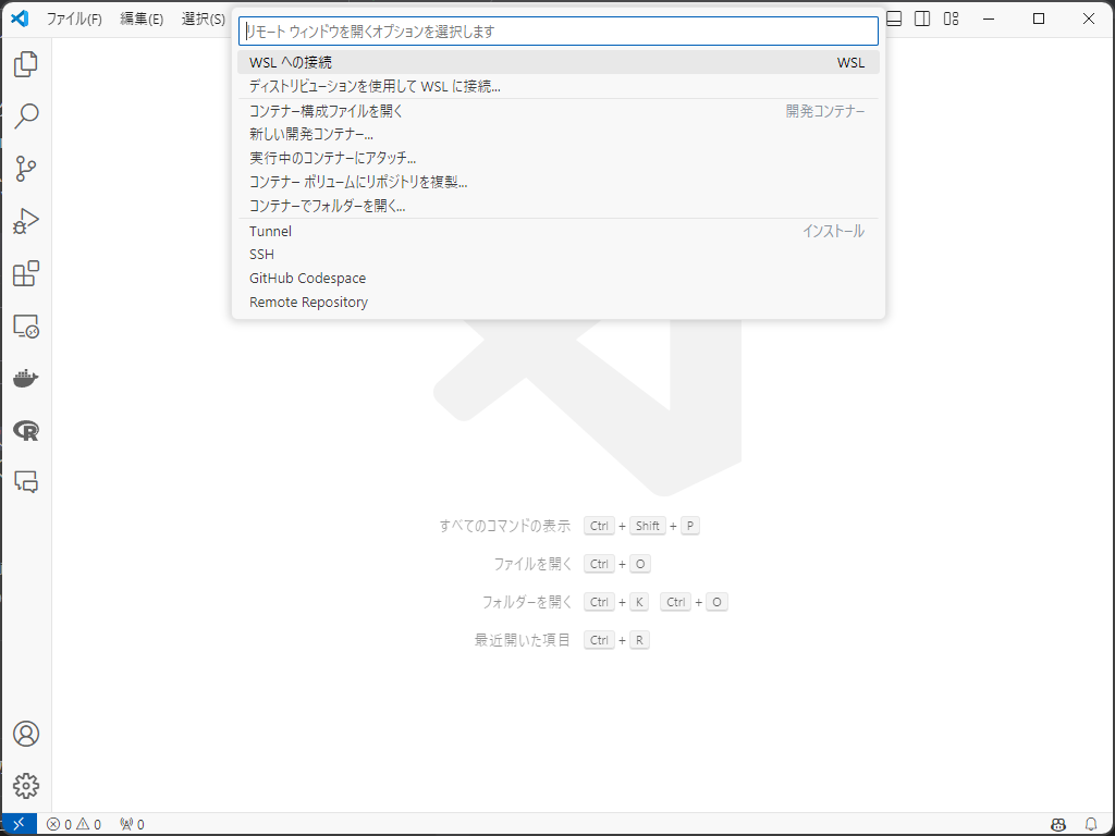 - VSCodeから先ほどインストールしたWSLに接続します。