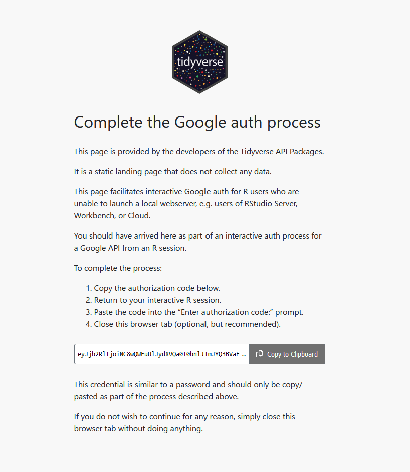 最後に以下の画面が出てきたら、下部のコードをコピーし、RStudioのコンソールに打ち込み、実行します。