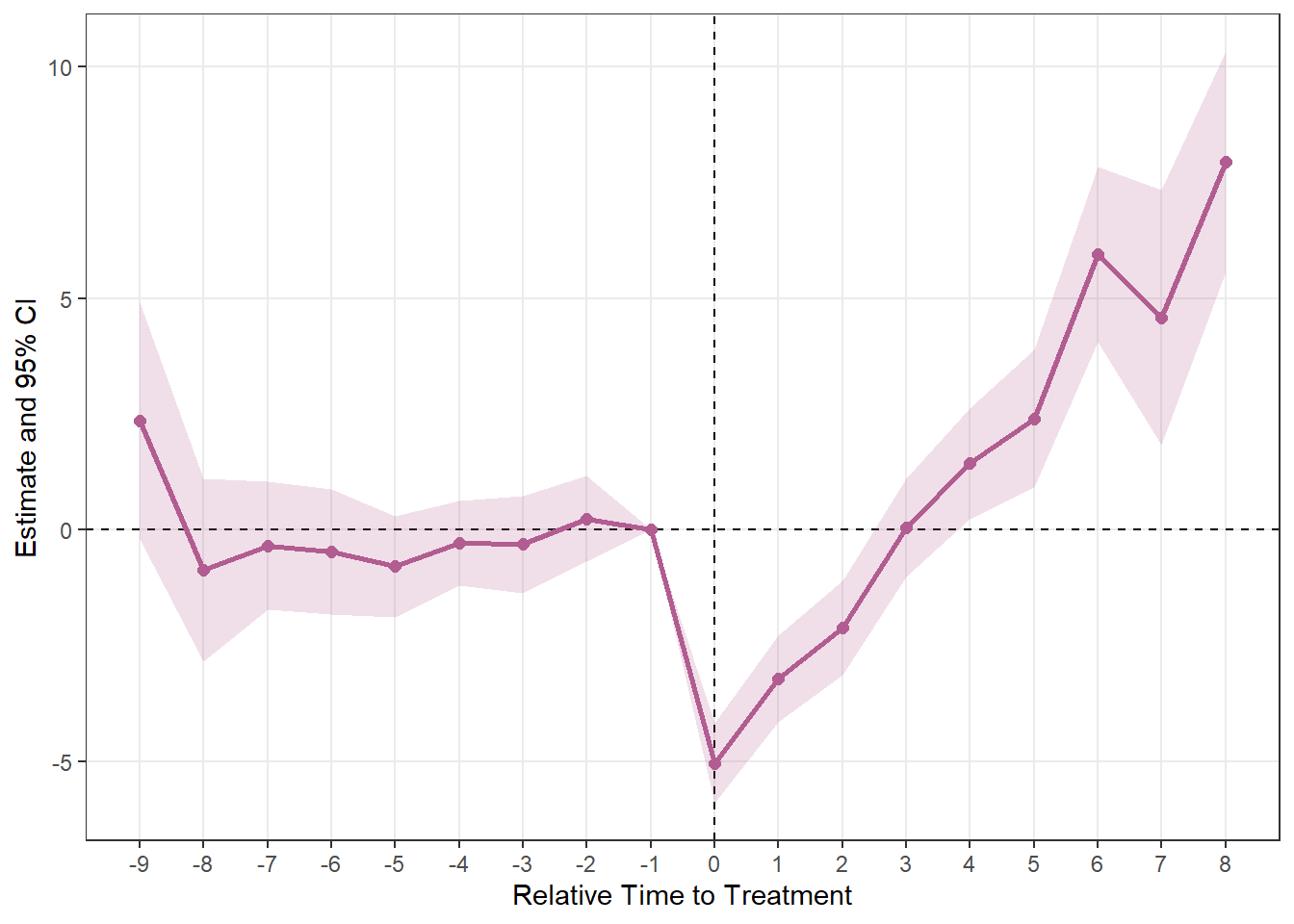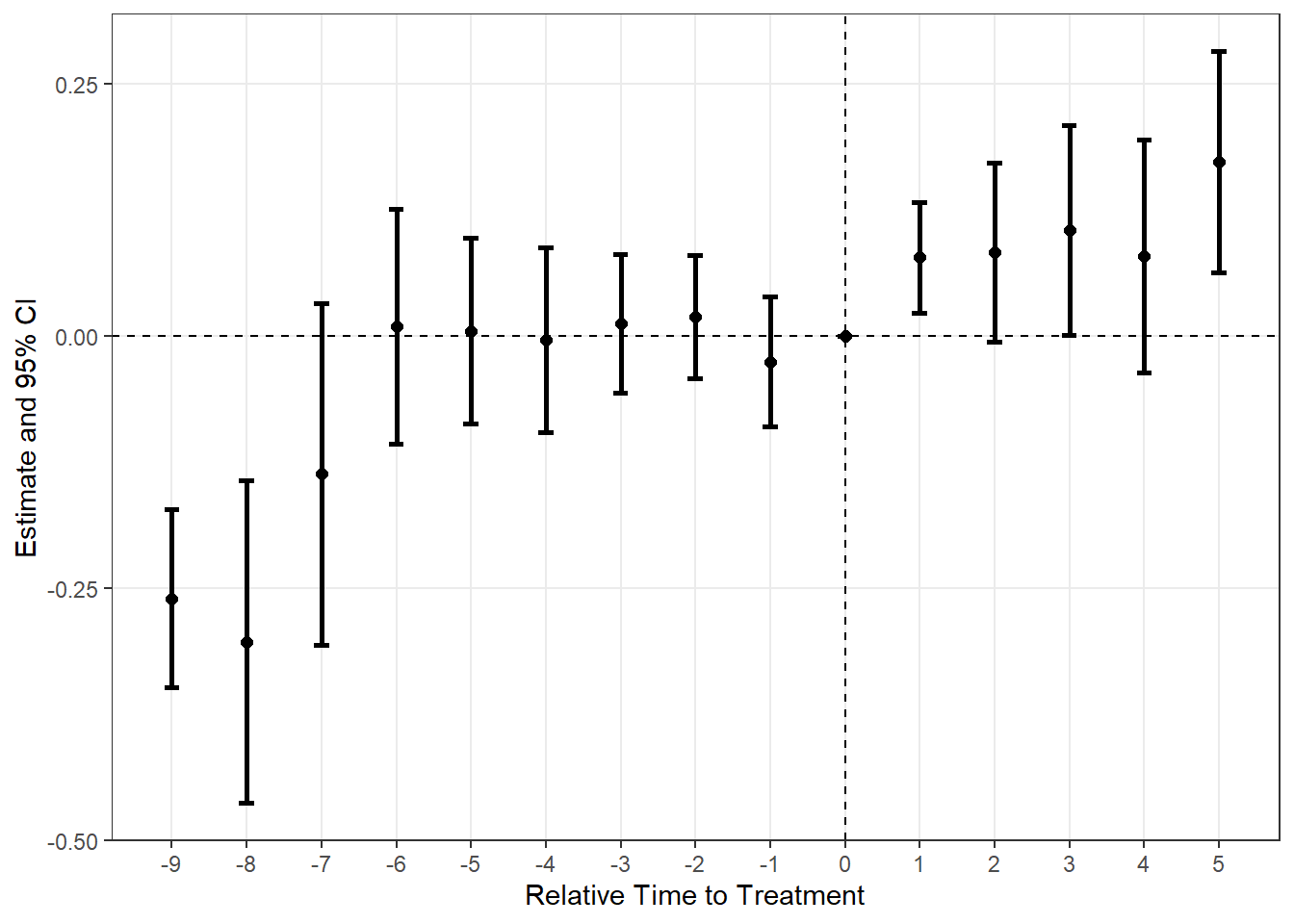 これまでは処置個体において処置タイミングが同一のベーシックなイベントスタディにのみ対応していましたが、アップデートを経て各個体で処置タイミングが異なる、いわゆるStaggered DiDにおけるイベントスタディにも対応しました。