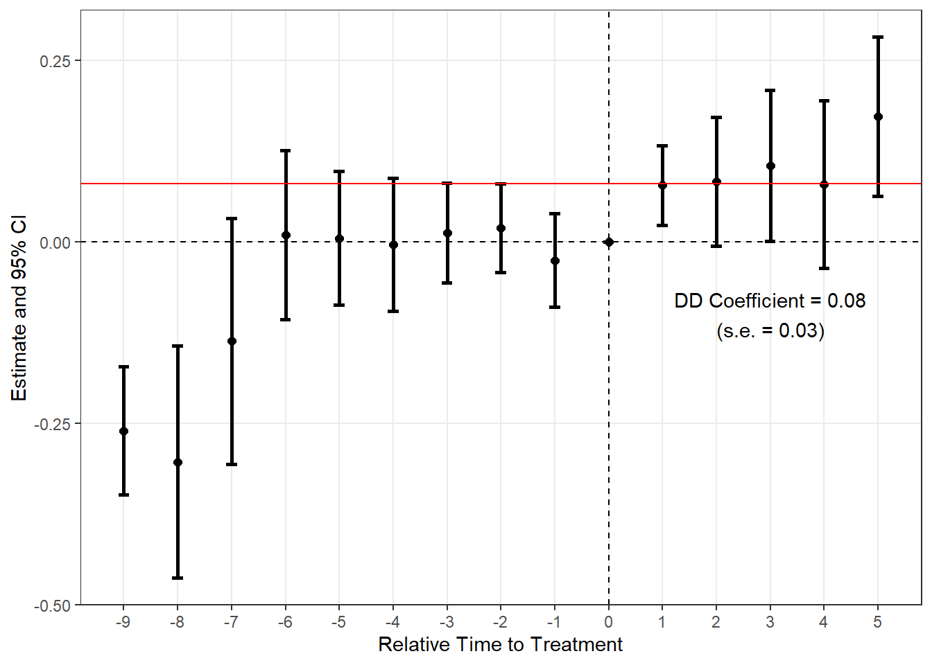 label = "DD Coefficient = 0.08\n(s.e. = 0.03)"