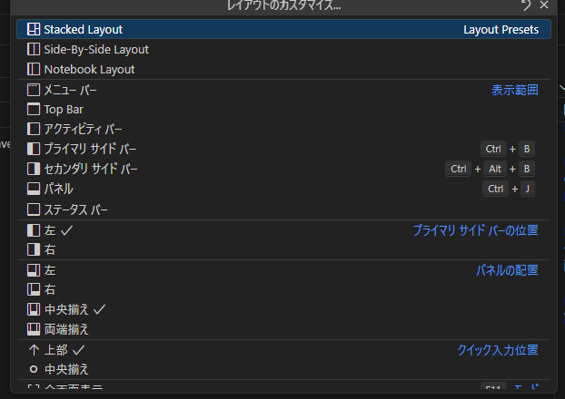 いろいろな選択肢が出てきますが、デフォルトでは1番上の「Stacked Layout」です。