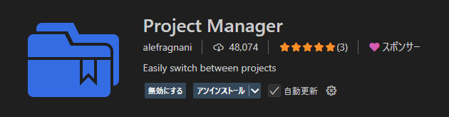 ではどうやってそのフォルダを開けばよいのか。それを解決してくれるのが「Project Manager」という拡張機能です。