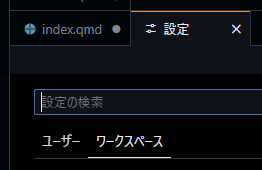 Positron(VSCode)にはユーザー設定とワークスペース設定があります。ユーザー設定はプロジェクトに依らずPositron全体に適用される設定で、ワークスペース設定は特定のワークスペース(フォルダ)にのみ適用される設定です。