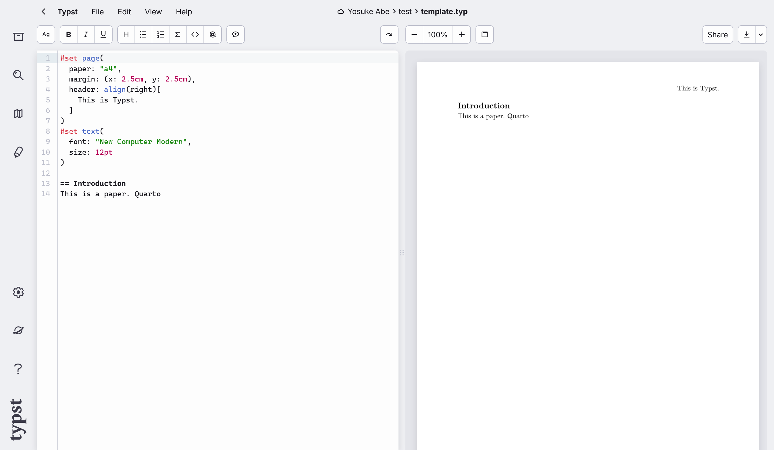 Typstはローカルにインストールする必要がなく、オンラインエディタで直接ドキュメントを作成できます。