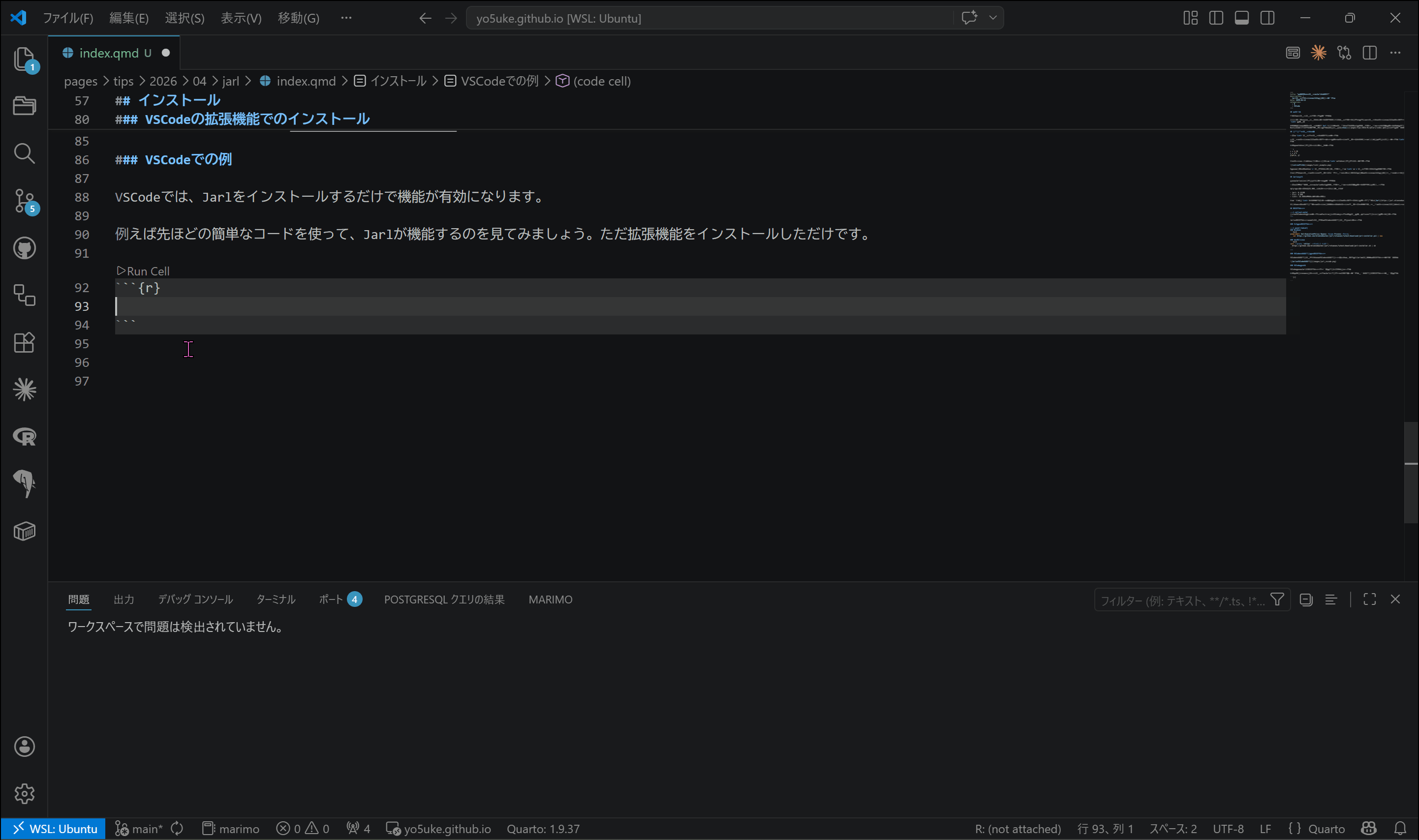 今回はVSCodeの例で説明しますが、PositronなどVSCodeベースのエディタであれば同様の機能が利用できると思います。